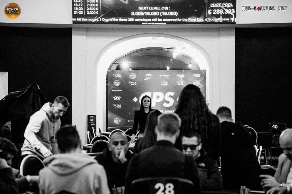 There are 35 minutes left to play on level 8, the penultimate level of Day 1B of the €2,200-entry CPS Main Event. 59 players will take a break before moving on to level 9... so far the counter shows 114 entrants and an average of 96,000 chips. Matei Lupascu dominates with 325,000 chips.