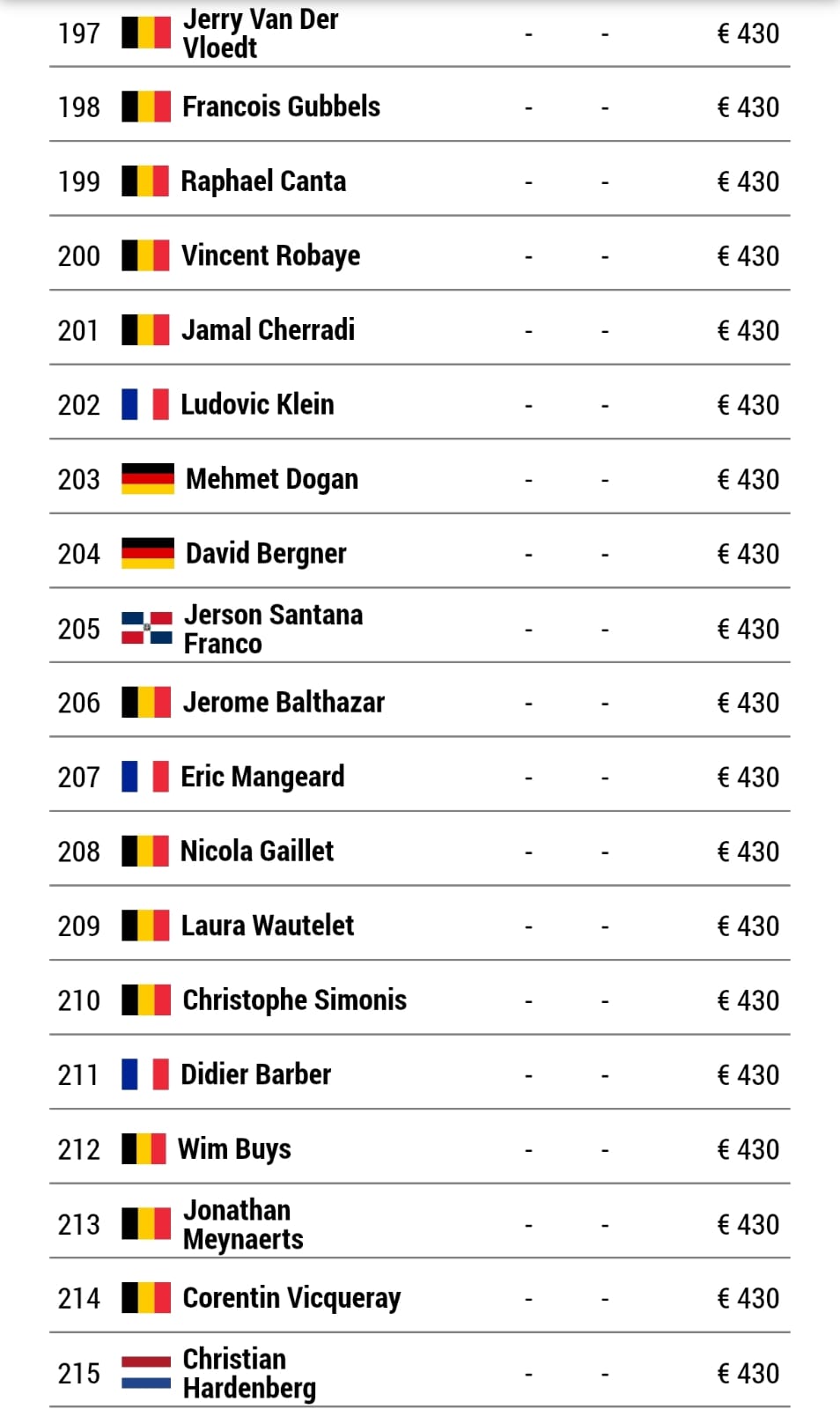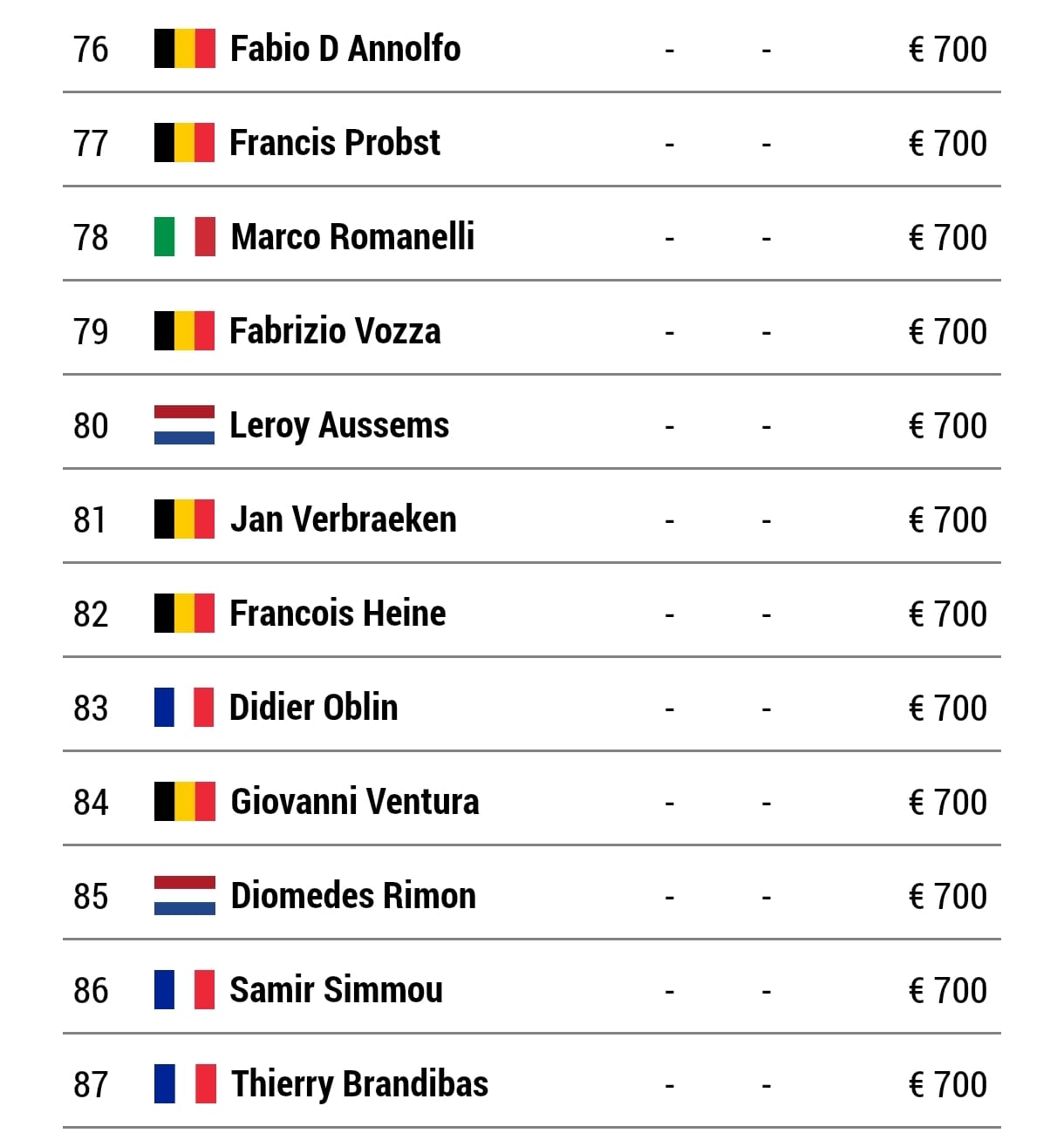 Francesco Pillitteri, Fouad Serrar, Soeniel Bhaggoe, Roger Sacre ou le croupier Antoine Cochet ont survécu à cette journée de folie qui avait commencé avec 339 joueurs ayant franchi une des 8 journées de départ.