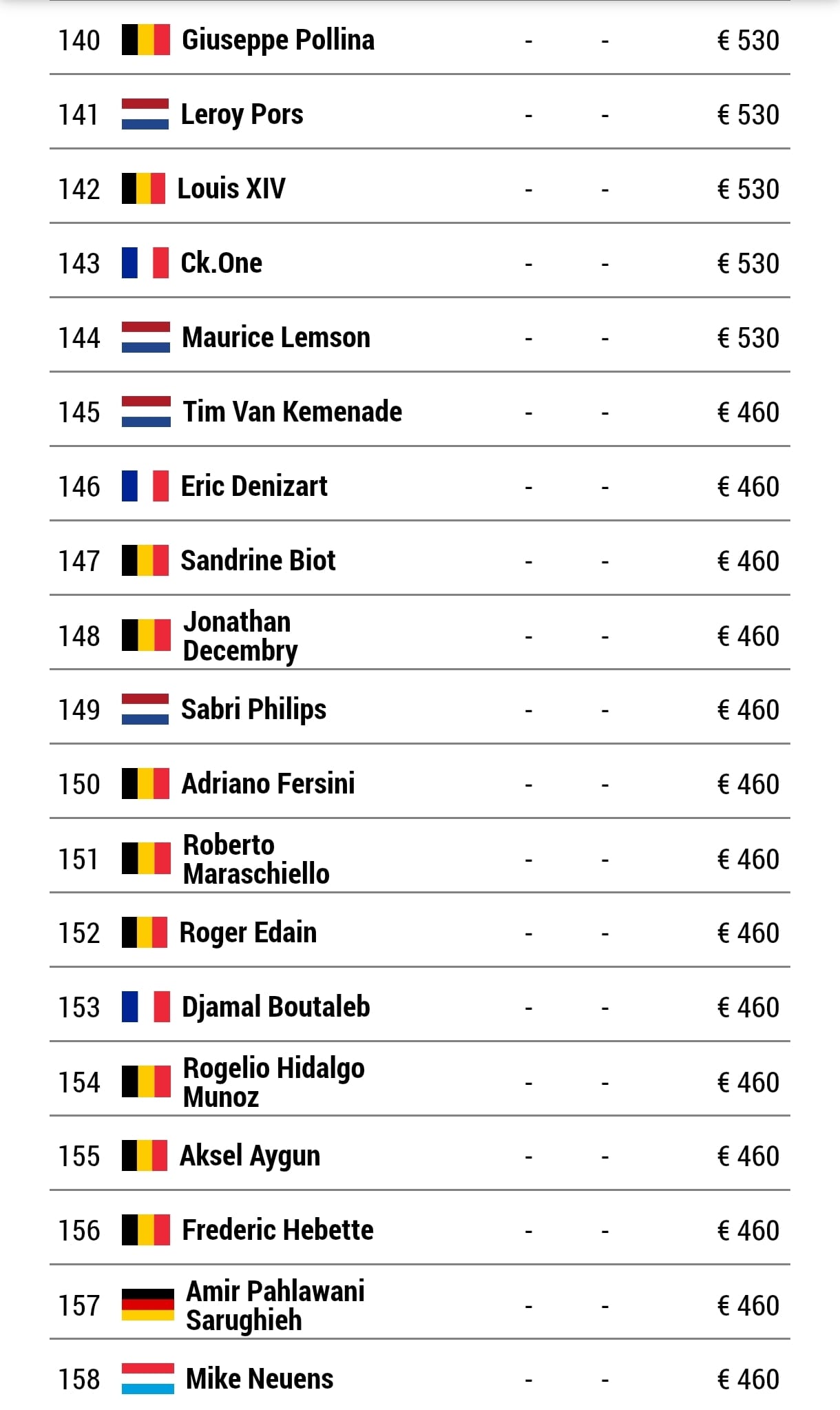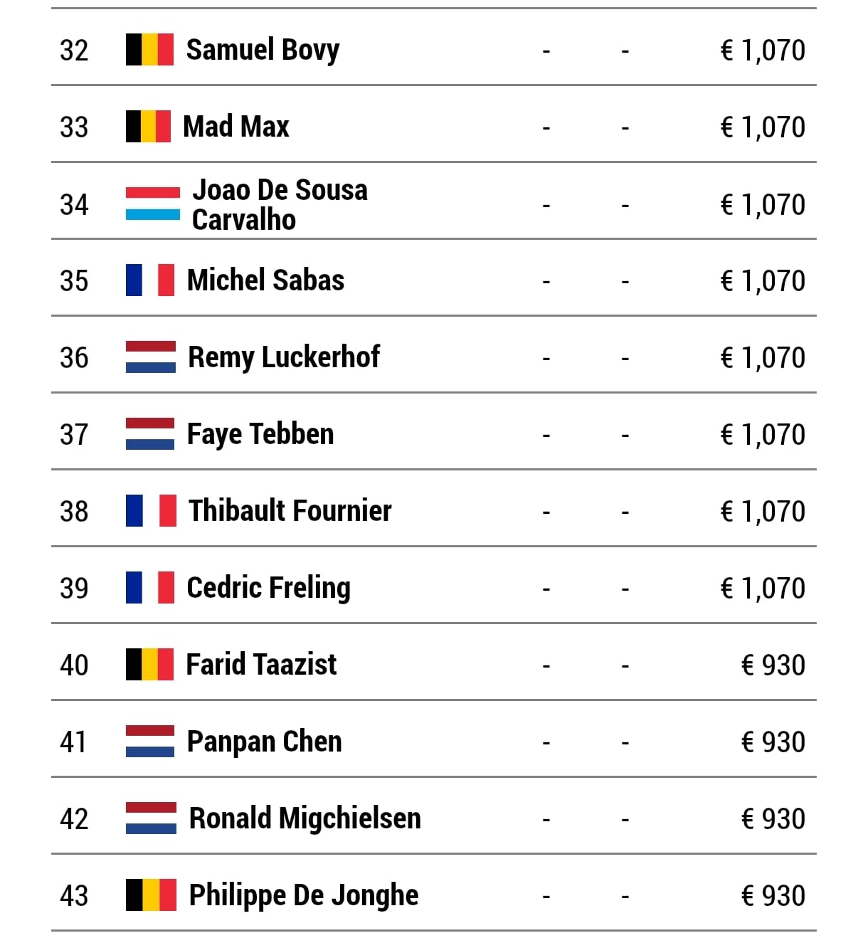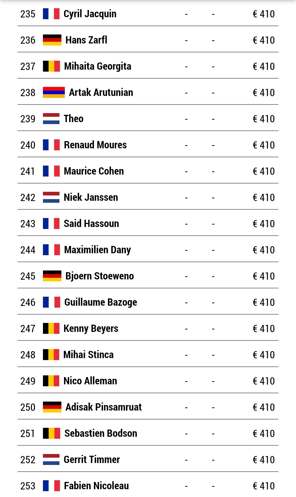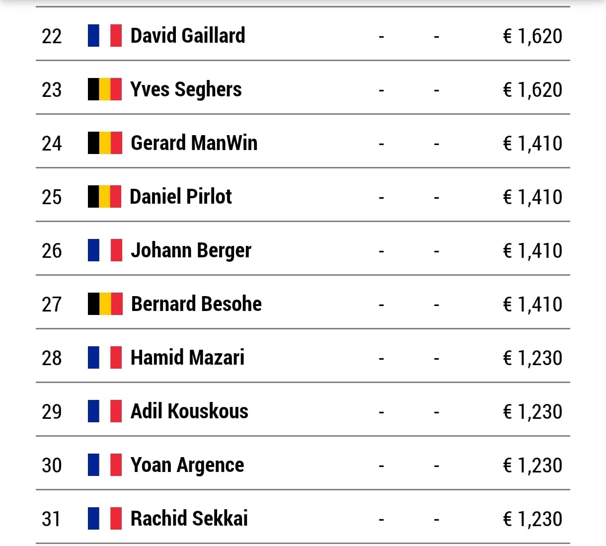 Sur la dernière main, Rens Buijs en a mis partout pour s'empaler sur les nuts de Jhonn Lienard (ci-dessus), ce dernier en profitant pour emballer plus de 9 millions et dépasser Kader Slila in-extremis... mais pas Egi Adriaans (ci-dessous).