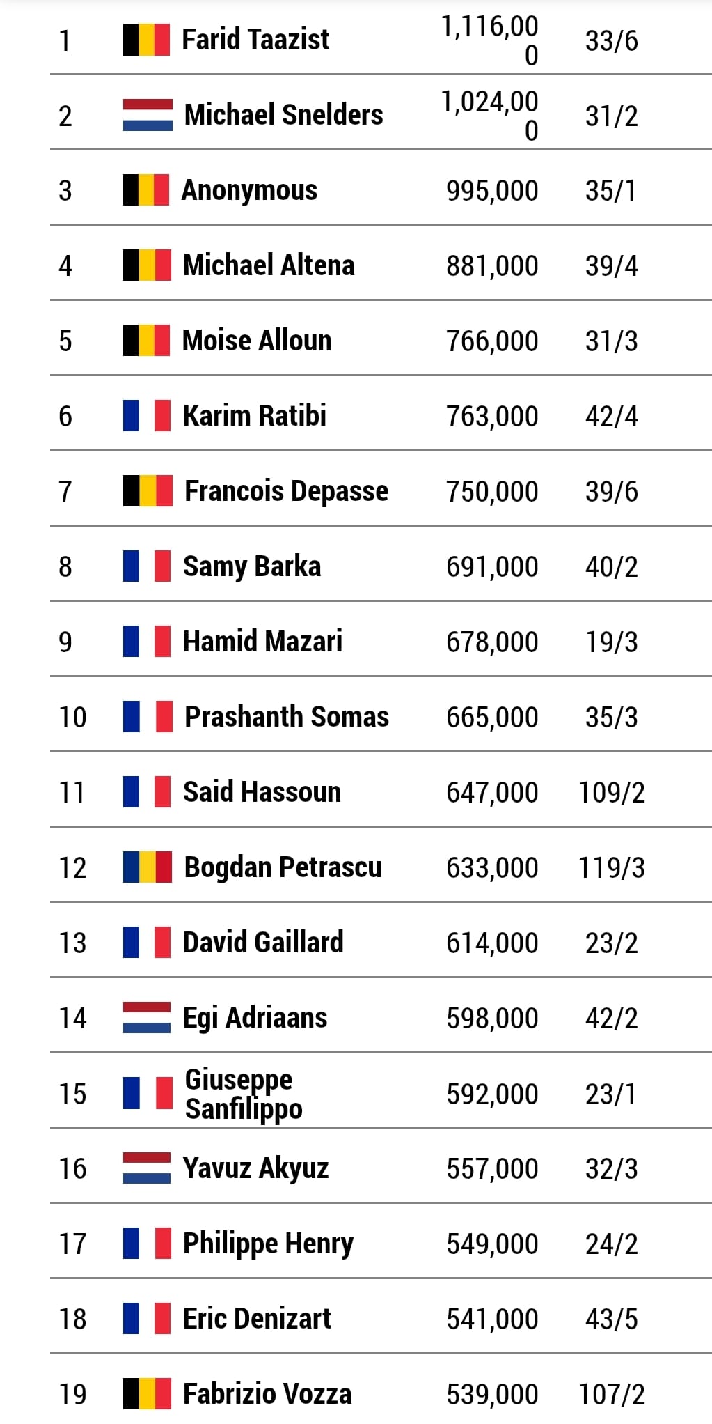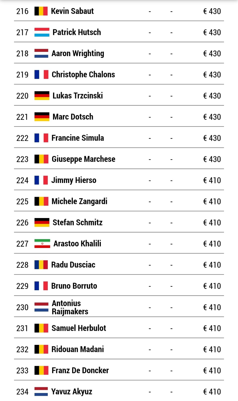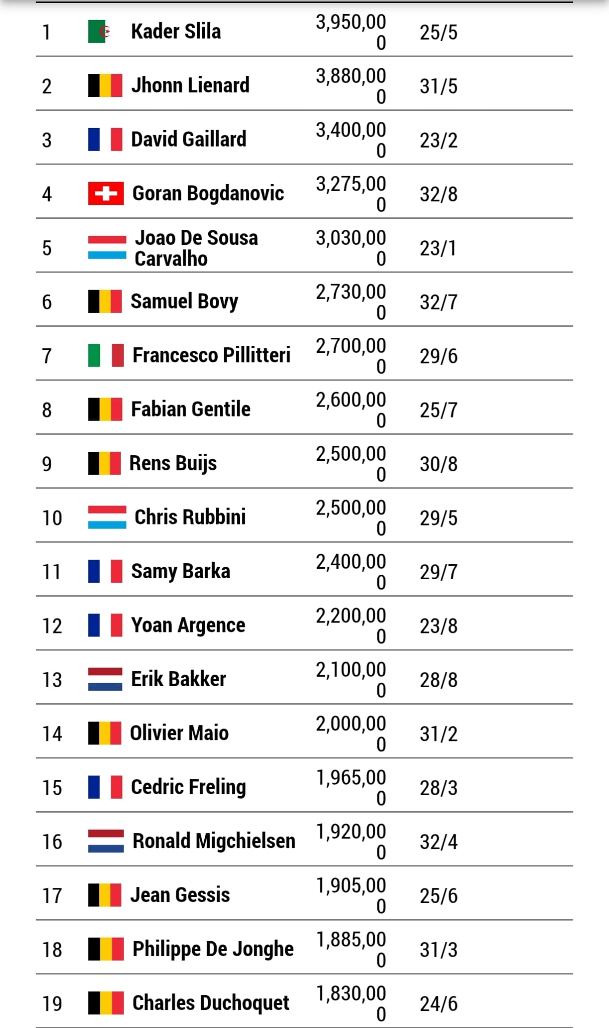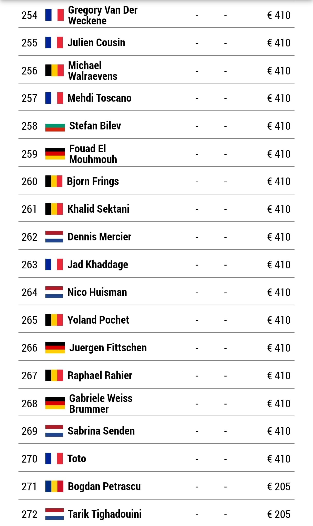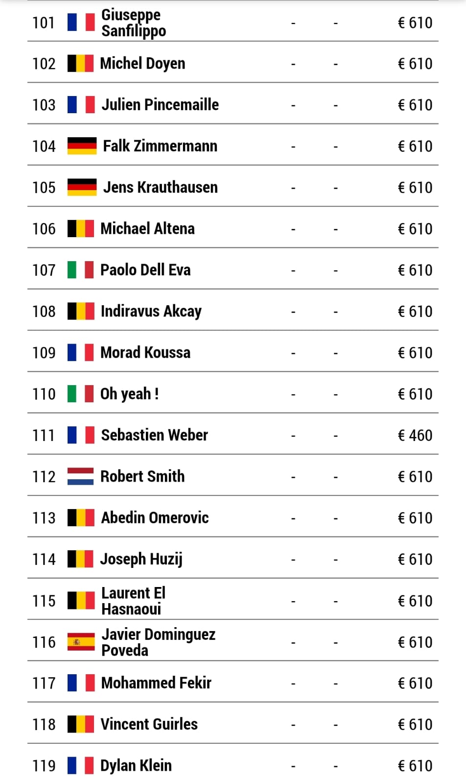 Sur la dernière main, Rens Buijs en a mis partout pour s'empaler sur les nuts de Jhonn Lienard (ci-dessus), ce dernier en profitant pour emballer plus de 9 millions et dépasser Kader Slila in-extremis... mais pas Egi Adriaans (ci-dessous).