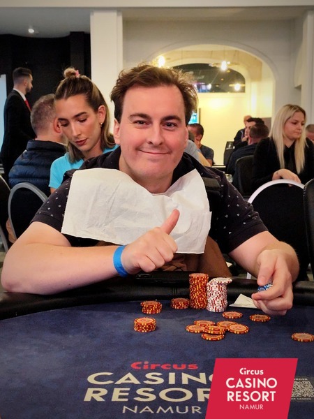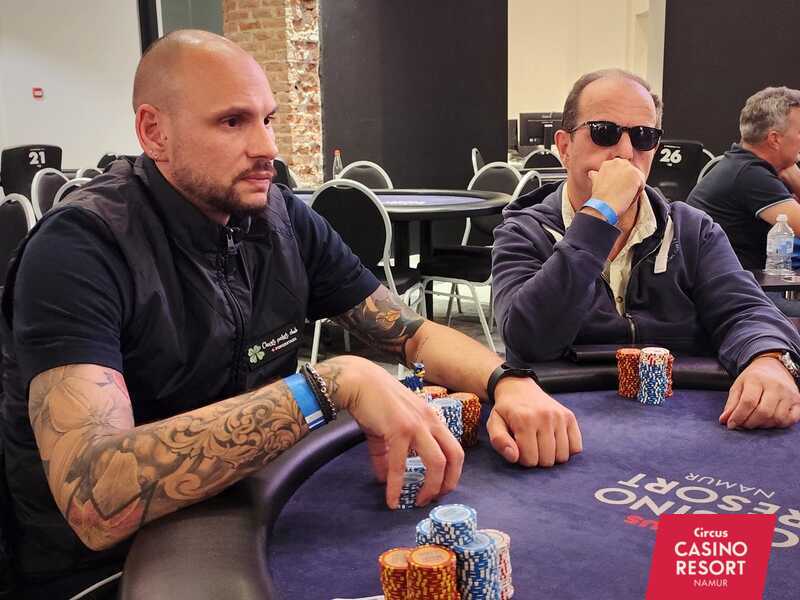 Les blindes grimpent à 6000 - 12 000 (12 000) et 48 joueurs ont sauté sur le premier niveau du Jour 2. En 40 minutes, le rythme est effréné comme souvent au Circus Casino Resort de Namur !