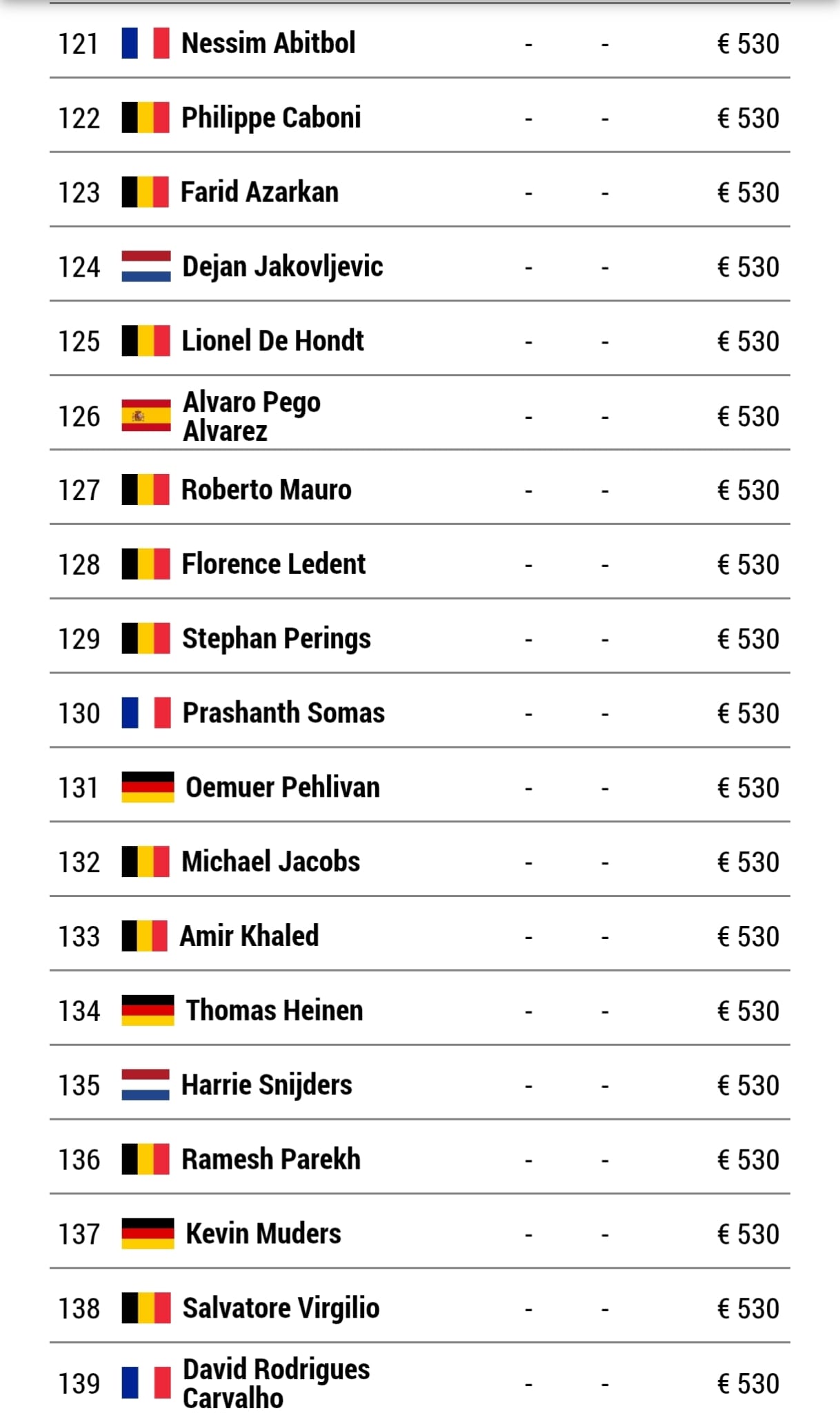 David Kahan, Dionke Ba, Yan Birg, Ibrahim Aslan,Octavian Ripan, Aurelie Sampaio, Wilhelmus Eilert, Sander van Beem, Ludovic Lelu, Luc Boeckx, Sven van Looy, Marielle Soumoy, Tony Kiorpes, Joao Faria ou Mehidi Sahli repartent les mains vides de ce Jour 2 !