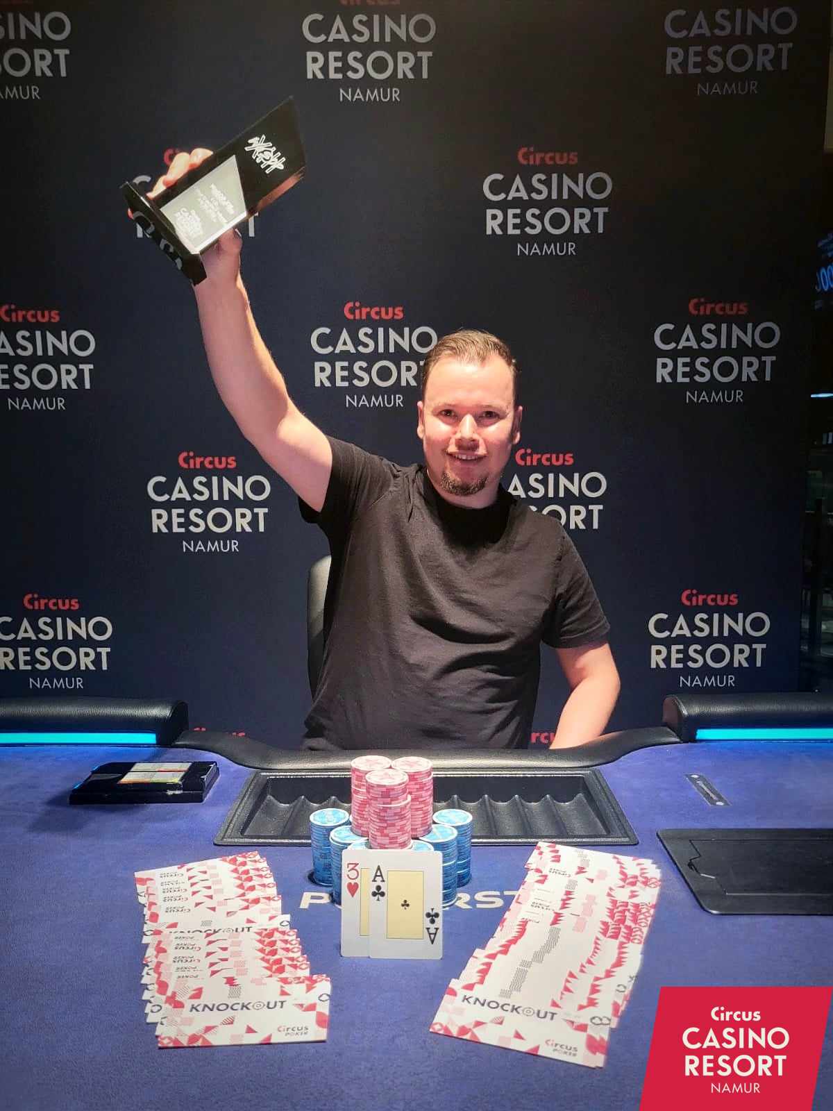 Bubbles for bubbles... Jean-François Hemmer finishes 16th and bubble-boy of the Circus Knockout Progressive Event #3 at €150 entry... on his 40th birthday. The Frenchman from Metz celebrates his 40th birthday with a bottle of bubbles courtesy of Circus Casino Resort!