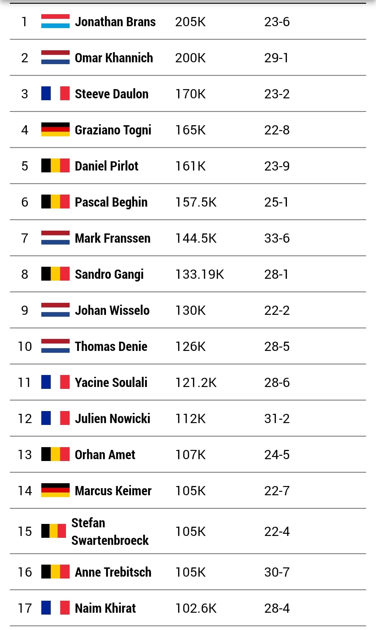 | Kristof Verhoeven | 261 000 |
