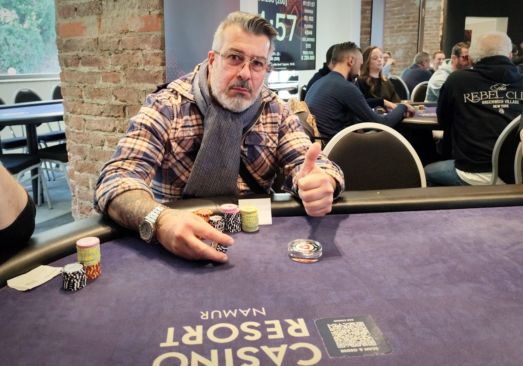 Il reste une petite demi-heure de poker sur ce Jour 1D qui a rassemblé 135 entrants et porté l'affluence provisoire à 606 entrées sur le Carnival garantissant 250 000€ de prizepool. Kris Verhoeven tient la corde et semble posséder un tout petit peu moins d'un demi-million alors que la ligne d'arrivée se précise.