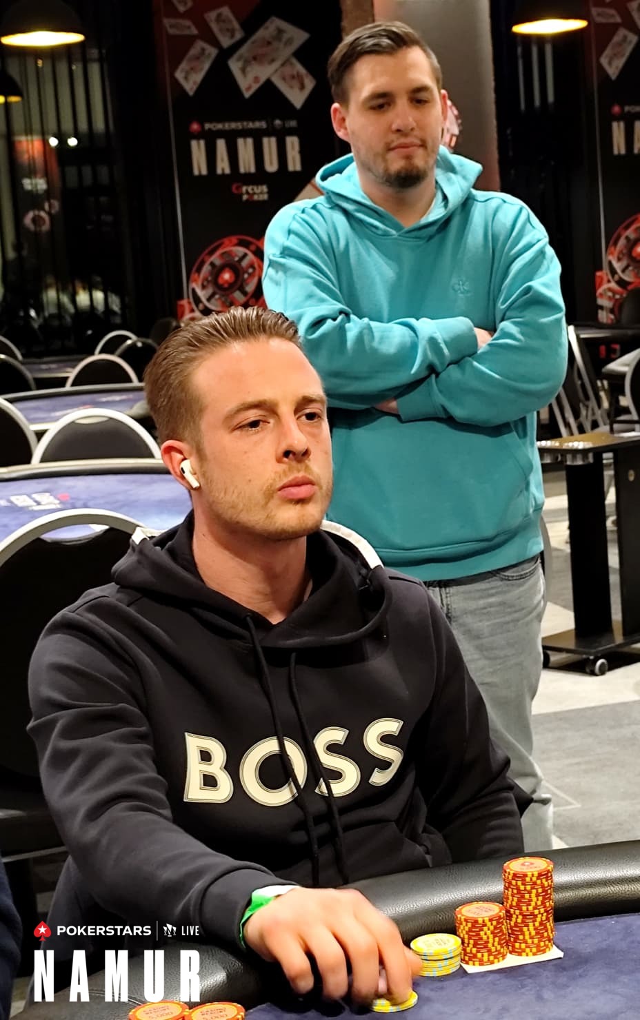 Ca passe aussi pour Steeve Daulon, Xavier Coutereel, Ewa Michalik, Taner Ayaan, Mark Franssen, Freddy Claverie, Samuel Bereket ou Maxime Servais... Premier sortant du Jour 1D, Mark van De Sande a bien fait de re-entr directement, il a emballé le deuxième stack, derrière Anne avec 455 000 jetons pour une reprise sur 3000 - 6000 (6000) samedi au Jour 2...
