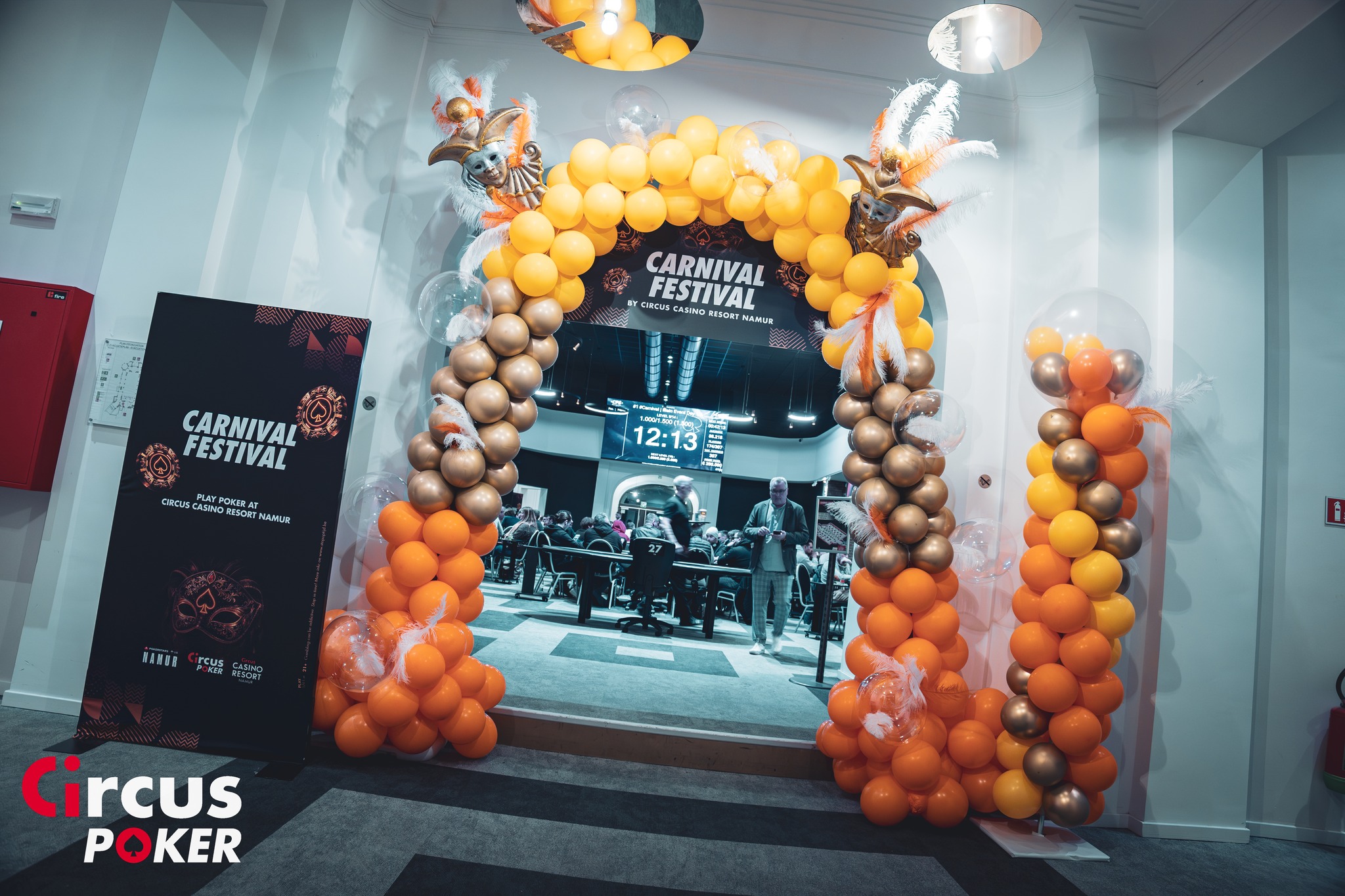 En route pour le reportage en direct du Circus Casino Resort de Namur. Place au Main Event du Carnival dont c'est déjà la quatrième des huit journées d'ouverture. 471 inscriptions ont été comptabilisées jusque là avec déjà 104 qualifications pour le Jour 2 de samedi 14 heures... 250 000€ garantis sur le tournoi, ca attire toujours du monde !