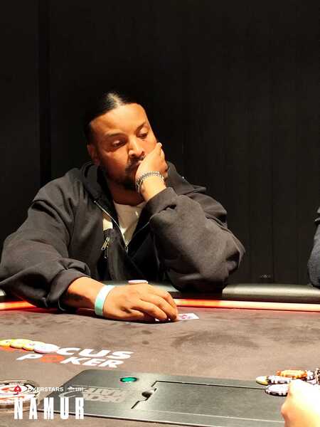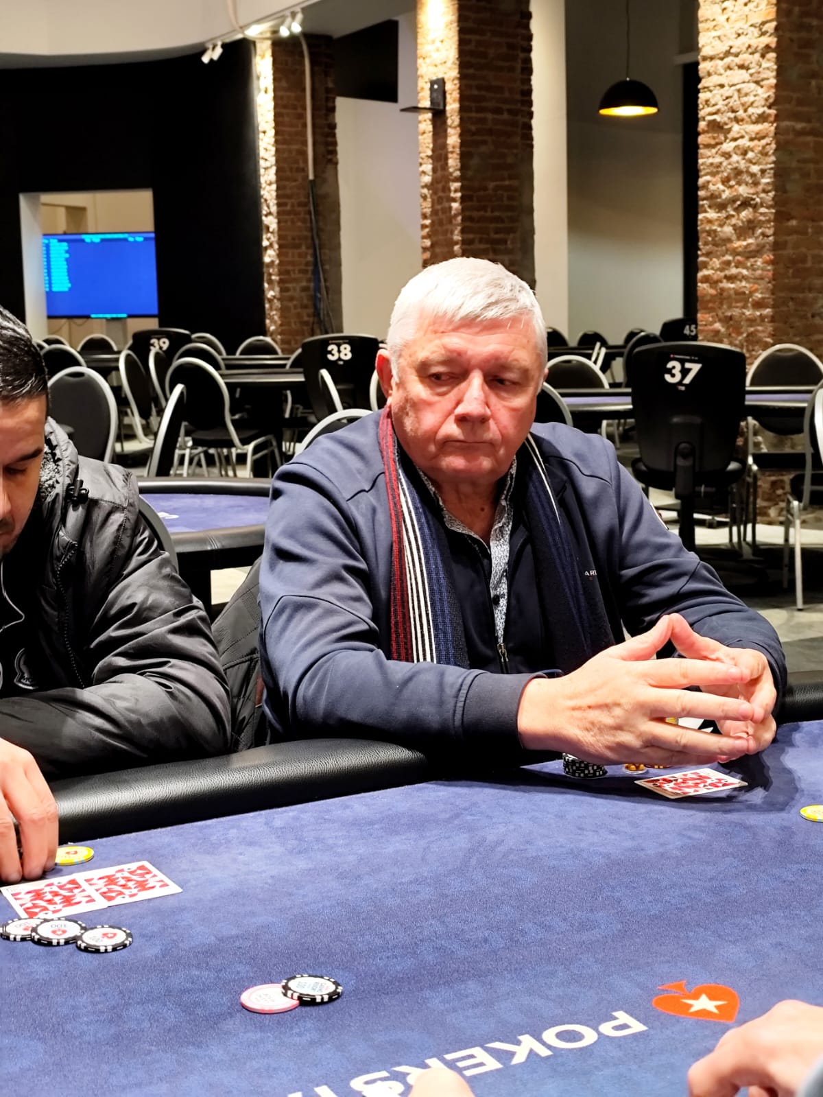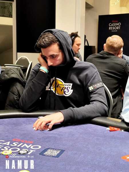 Derrière, Thomas Vandecappelle (155 000 - ci dessus) est bien conscient que le plus dur commence malgré déjà trois fois le tapis de départ. Bonne entame aussi pour Giuseppe Greco qui a doublé et éliminé un adversaire avec les As contre As 9 sur 9 8 7...