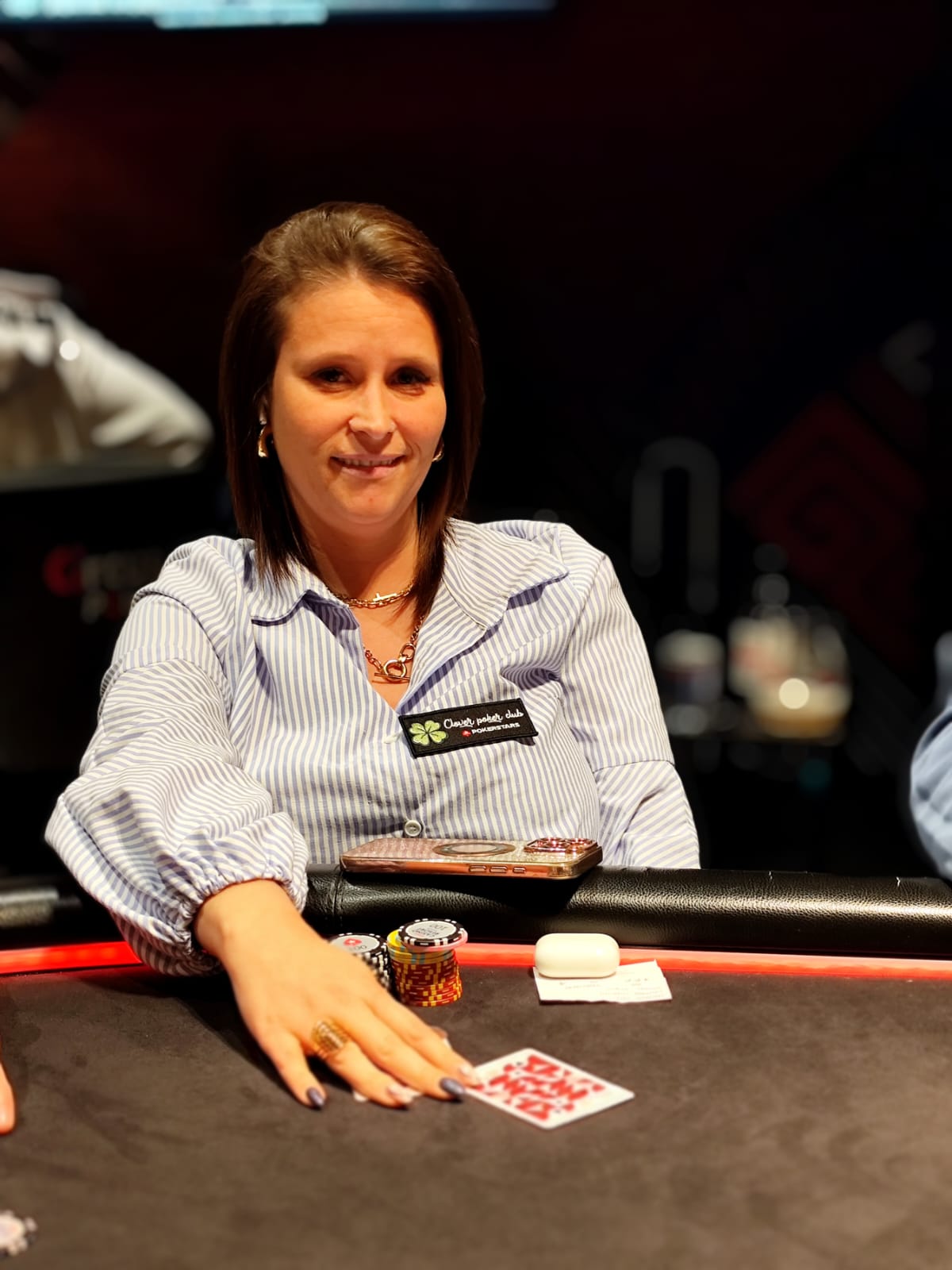 Elodie Koenn joue avec le porte-bonheur offert par Will Lion et cela semble lui réussir... celle qui modère pour Communauté Poker pointe à 175 000 jetons, en tête du tournoi.