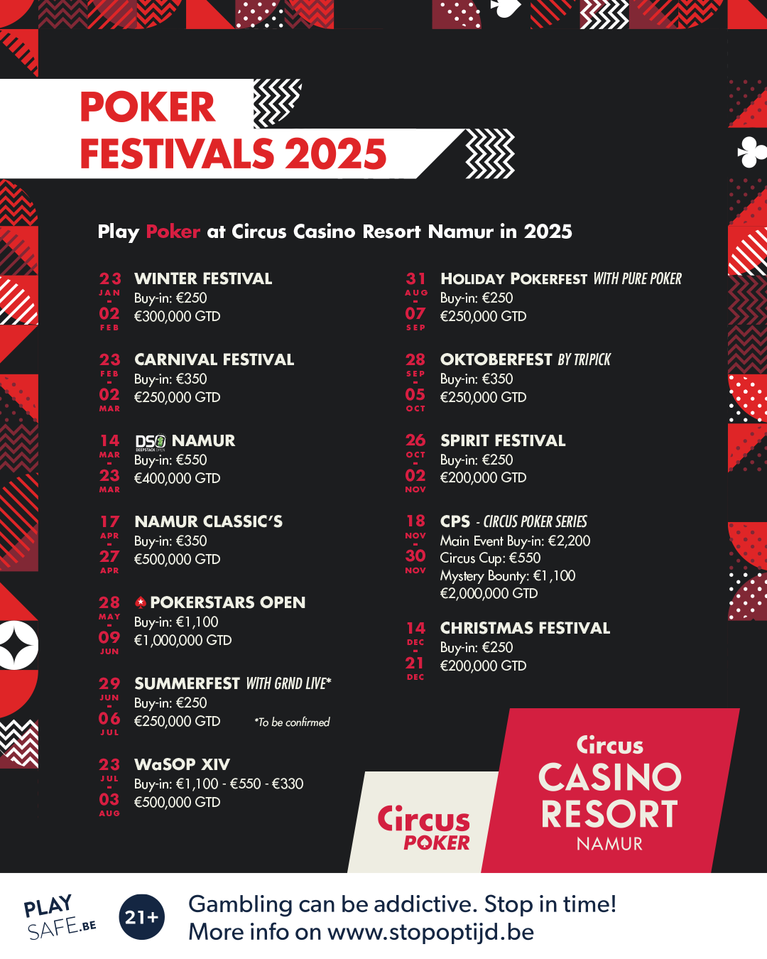 Ils sont venus mais ils ne sont pas tous encore là... enfin il y a déjà beaucoup de monde au Circus Casino Resort de Namur pour ce Jour 1A d'un événement garantissant 200 000€ de prizepool.