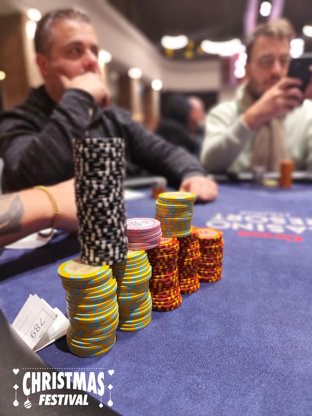Ils sont 500 entrants sur le Jour 1D à 45 minutes de la reprise post-dînatoire marquant la fin des inscriptions tardives sur l'avant dernière journée de départ du Christmas... 237 joueurs sont en break et reviendront à 20 heures 40 sur les blindes 1000 - 2500 (2500).