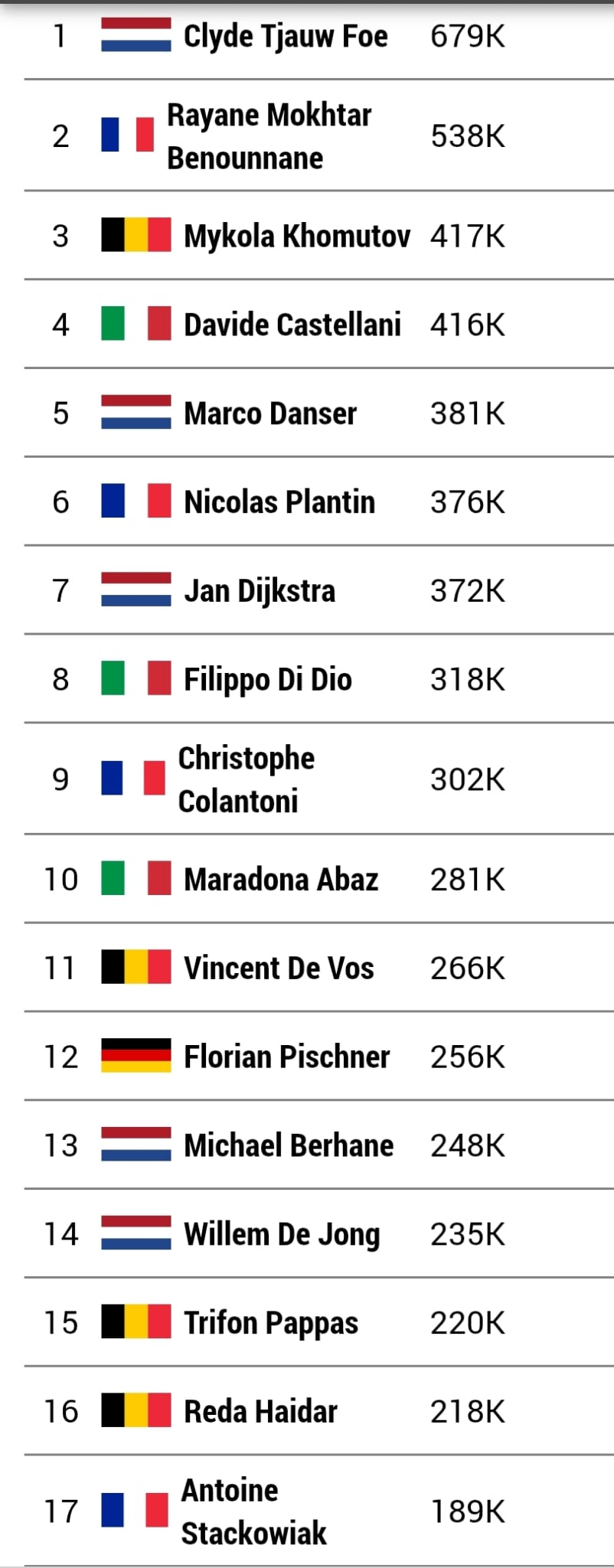 Parmi les habitués qui ont aussi monté des jetons, Christophe Colantoni, Florian Pischner, Nicolas Plantin ou Antoine Stacko. Qualification aussi pour Jonathan de Schepper, Daniel Mueller et Carina Voncken. Steven Rothheut est passé aussi mais il a perdu le gros flip juste avant la fin... il retrouvera Reda Haidar, Olivier Hegy, Mike Niegho ou Reda Haidar...