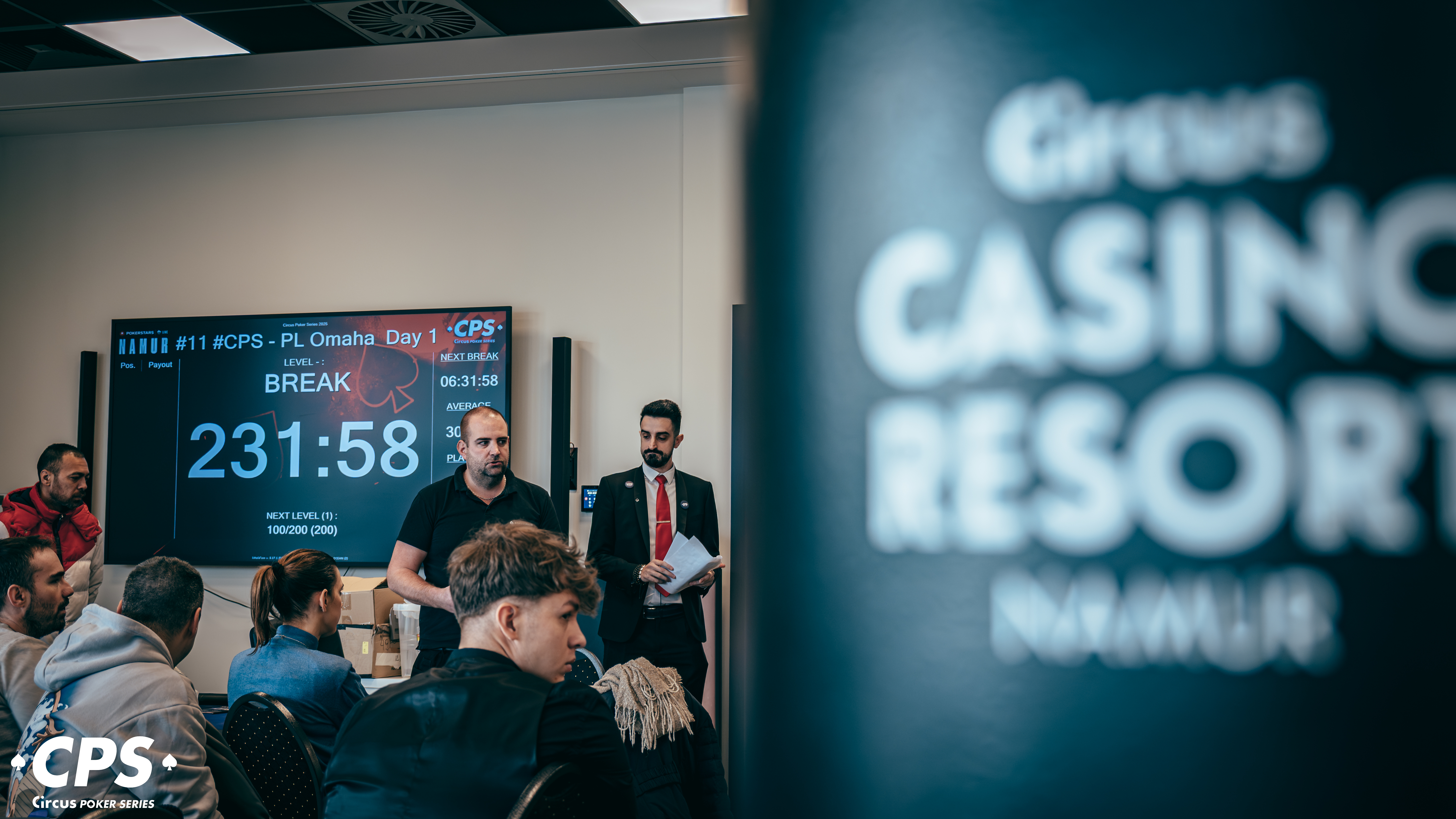 Coup d'envoi de l'avant dernière journée de la Cup CPS 2025 à 550€ l'entrée sur les blindes 100 - 200 (200) avec 90 joueurs assis et d'autres aux caisses du Circus Casino Resort de Namur. Samedi c'est folie avec une Cup garantissant 500 000€ de prizepool qui devrait faire le plein.