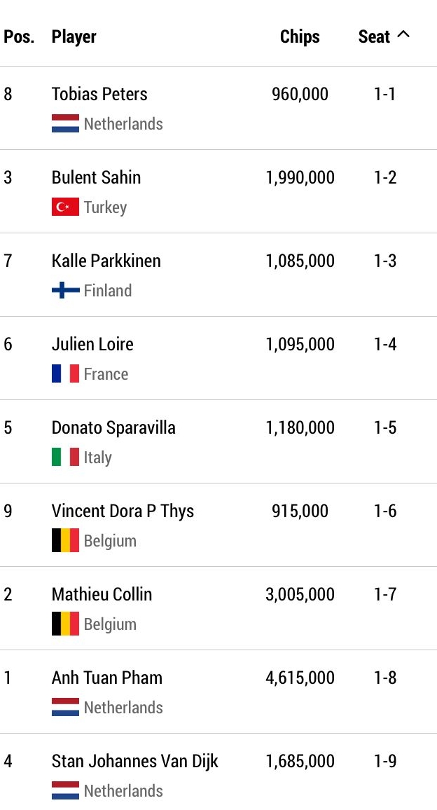 Mathieu Collin et Stan van Dijk ont arrondi leur total avec quelques belles primes mais sont dehors... Julien Loire est lui sorti sur un badbeat !