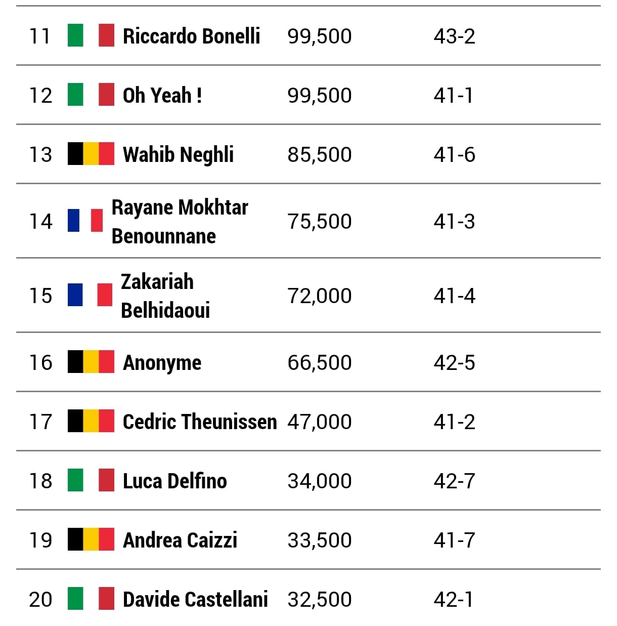 20 joueurs ont franchi les 12 niveaux et les six heures de jeu de la journée d'ouverture de l'Event #7 Freezout des CPS 2025 à 330€ l'entrée... Sept Belges sont en tête et c'est un habitué du Circus Casino Resort de Namur qui est en tête, Angelo A !