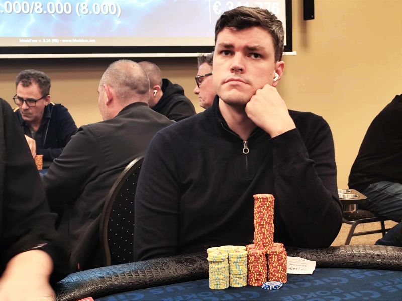 Cela sera moins que les 50 000 du starting de départ pour Mathias Moutaoukil. Le Marocain a fait demi-finales des derniers WaSOP et compte bien deep-run une fois de plus à Namur... Tenant du titre et vainqueur l'an passé pour un peu lus de 40 000€ en cash et ticket CPS à 2200€, Lucas Bertrand a bien débuté sa tentative de back-to-back !