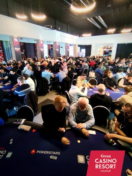 Le vendredi c'est le jour le plus long avec toujours grande foule au Circus Casino Resort de Namur. Au programme, les deux journées dernières journées de départ sur le Main Event à 350€ garantissant 300 000€ de prizepool, le Jour 1 G qui a débuté à 14 heures avec 13 niveaux de 40 minutes (late reg jusqu'à 22 heures 45) et le Jour 1H Turbo disputé sur des niveaux de 20 minutes (late reg' minuit 30)...