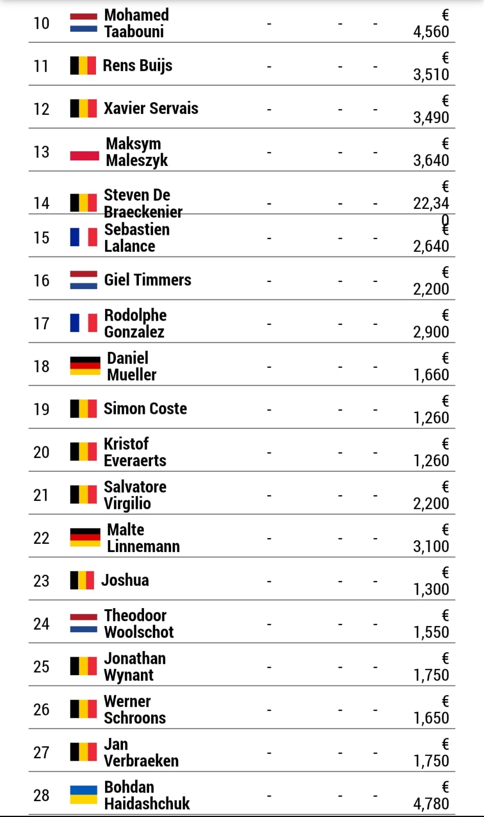 3e | STOELTJES | Remco | 15 710 € | 4 150 € |