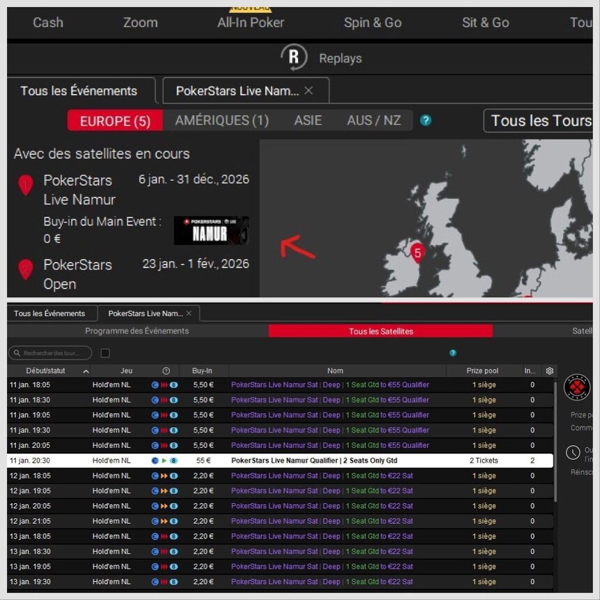 Satellites disponible en ligne sur PokerStars pour 2,20 €