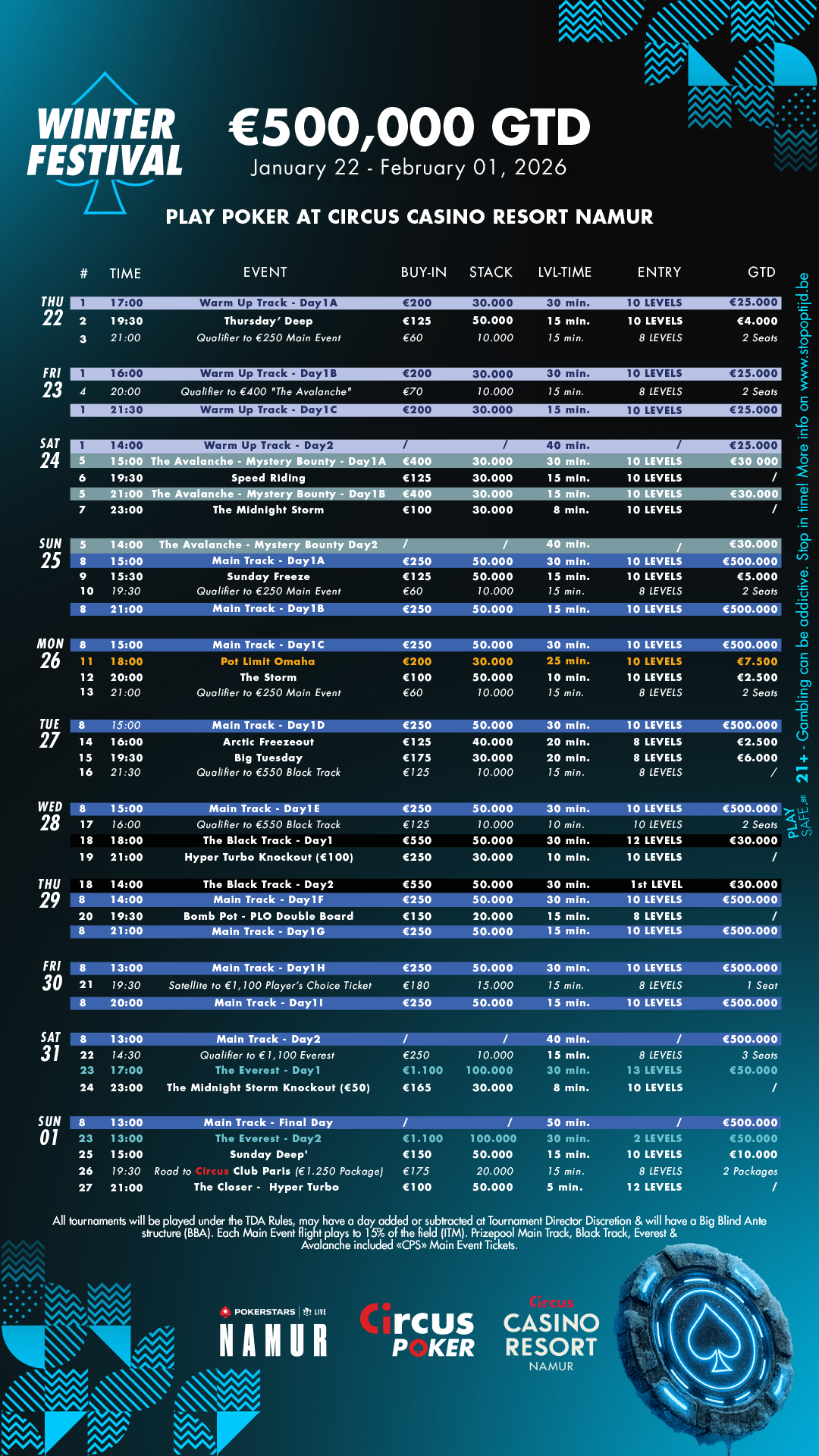 Du 22 janvier au 1er février 2026, le Winter Festival, un des gros rendez-vous de l'année 2026, revient en force au Circus Casino Resort Namur pour une édition qui s’annonce une nouvelle fois massive !