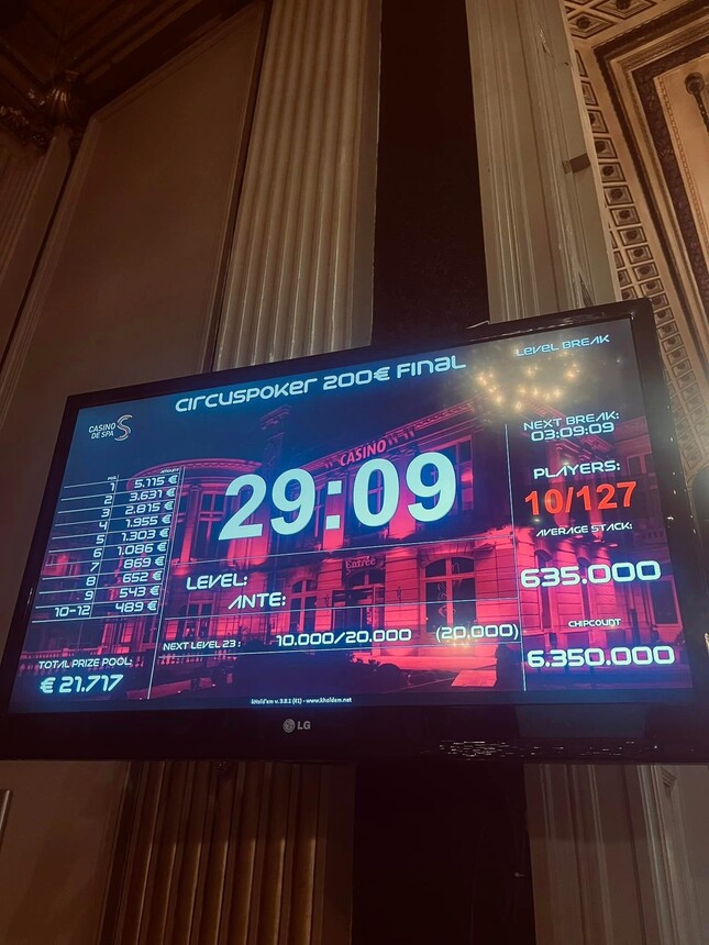 Troisème édition du Circus Poker Festival au Casino de Spa ces 20,21 et 22 octobre. Le main event a rassemblé 127 joueurs uniques et ils étaient encore 24 à l'aube du "final day" du dimanche.