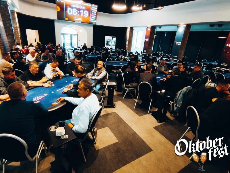 Coup d'envoi de la deuxième session de qualification du Main Event Oktoberfest à 16 heures au Circus Casino Resort de Namur. La partie a débuté sur les blindes 100 - 200 (200) avec 50 000 jetons pour tous les candidats.