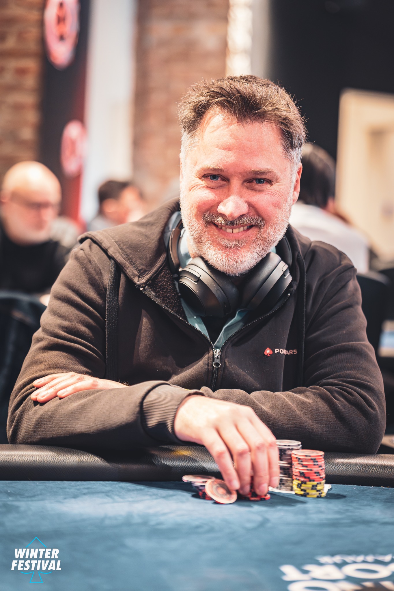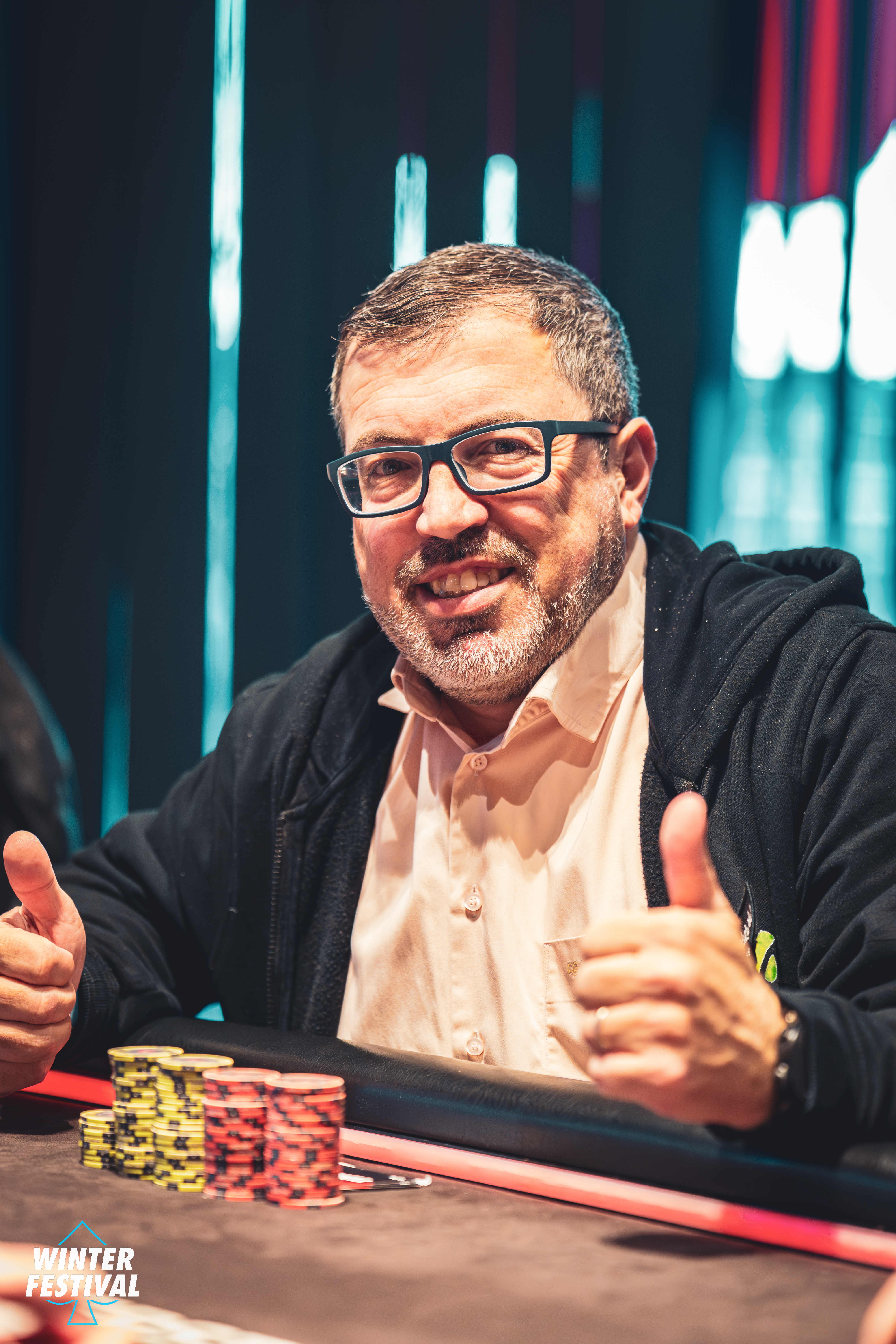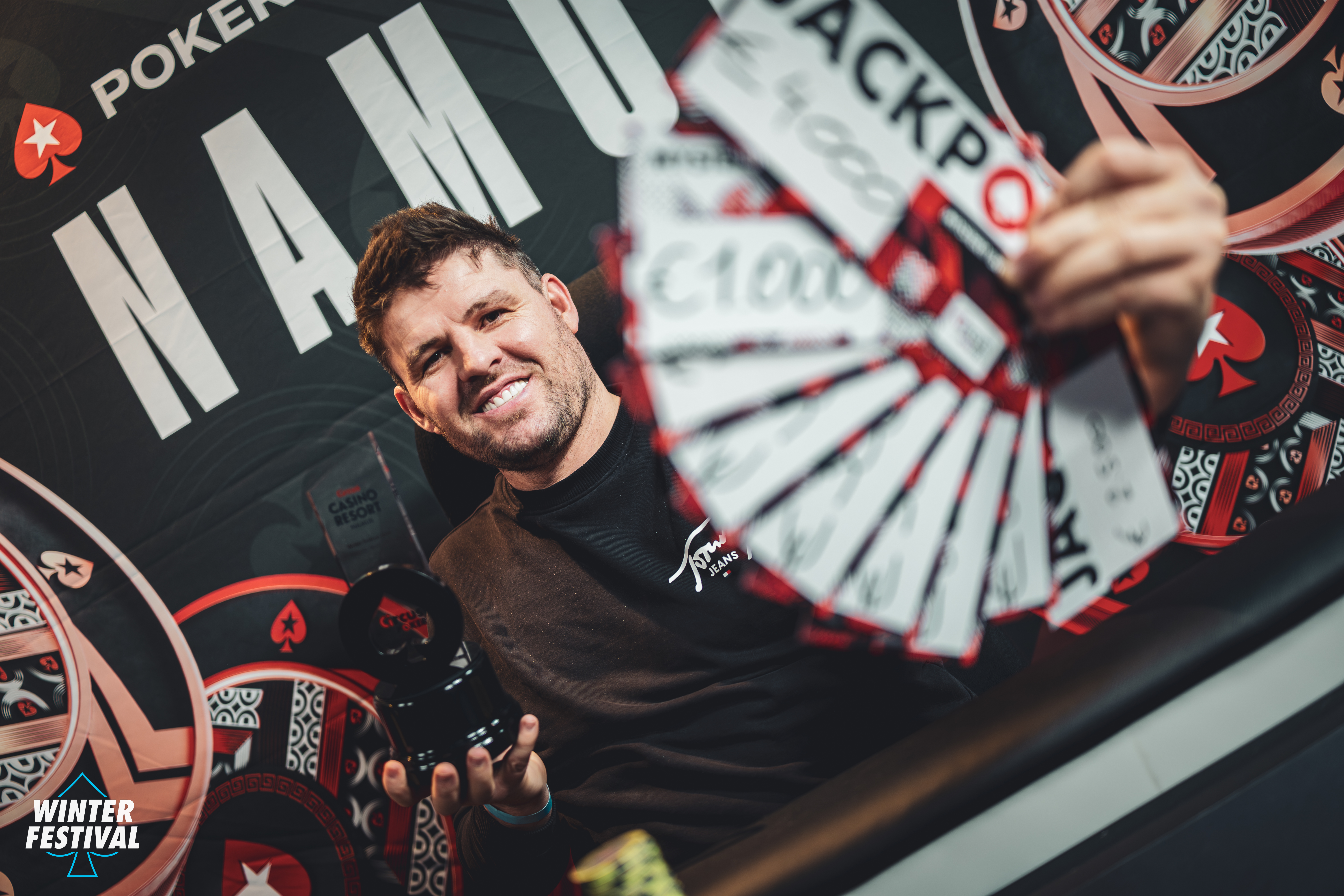 Cette accession à l'argent a provoqué les premiers tirages... pour le moment c'est à chaque fois la prime mini à 300€ qui a été sortie. Andreas Gondrom (ci-dessous) s'en est contenté et ses adversaires ont lâché un gros "good job" en applaudissant quand il a dévoilé son gain !