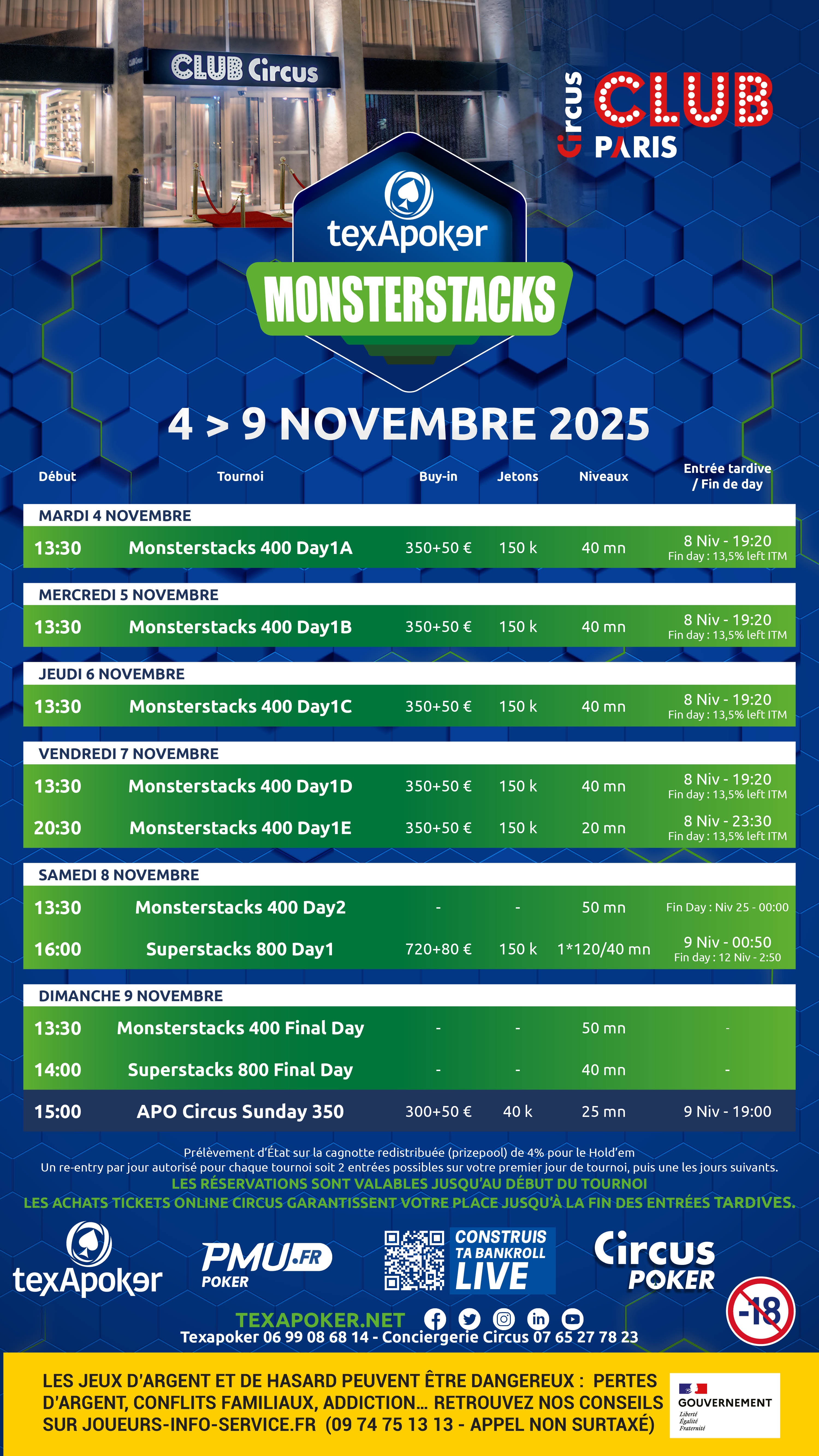 Le festival Monsterstacks by Texapoker est de retour au Club Circus !