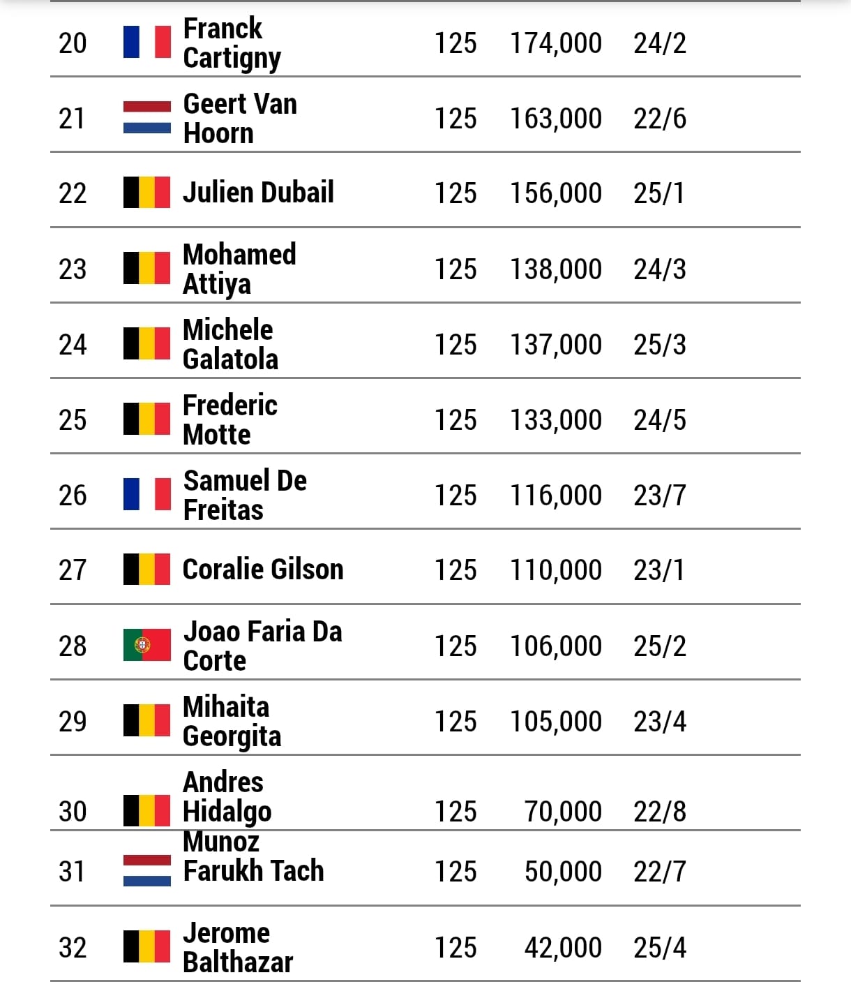 Moise Alloun (135.000), Nadir Guendouze (95.000) en Farukh Tach (100.000) hebben ook een goede start. Gigap Jo (65.000) heeft nog geen 200.000, maar hij gaat nog steeds goed! Het tempo is er ook voor een Carnaval-winnaar (voor €53.000), Franck Cartigny uit Frankrijk. Lid PKL heeft iets meer dan 200.000 pionnen en heeft de beginstack al 4 keer overschreden!