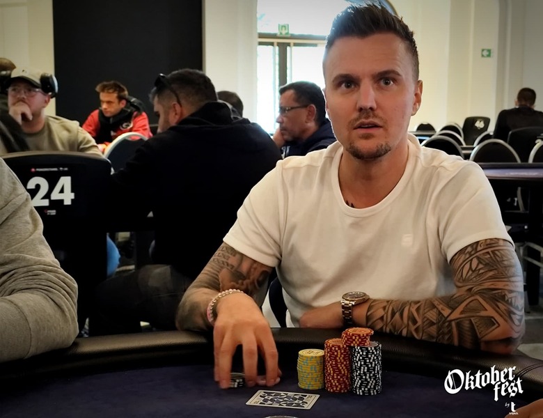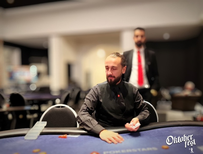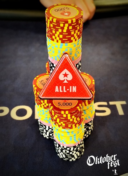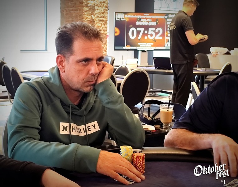 Het spel is hervat op blinds 400 - 800 (800) voor de 5e van 14 levels op de openingsdag van de €350 Okoberfest Mystery Bounty... Met 62 spelers in de running voor 73 deelnemersDe opkomst blijft gestaag stijgen.
