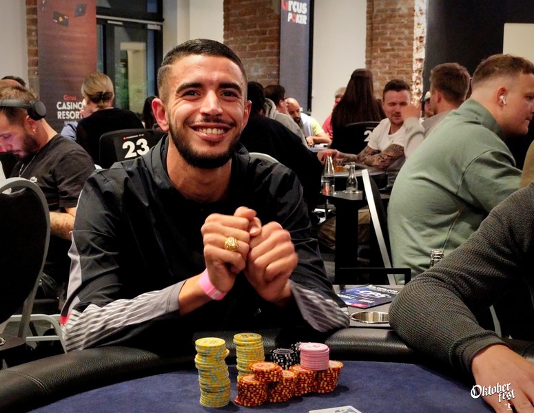 Het is etenstijd op Dag 1D van Oktoberfest 2025... Na 7 levels van een half uur hebben 62 van de 95 geregistreerde spelers dinnerbreak tot 21.00 uur. Hervatting op blinds 600 - 1200 (1200) met 77.000 gemiddelde chips en een baas op 245.000 chips. Oussama Mohmoh is een en al glimlach en 245.000 chips!