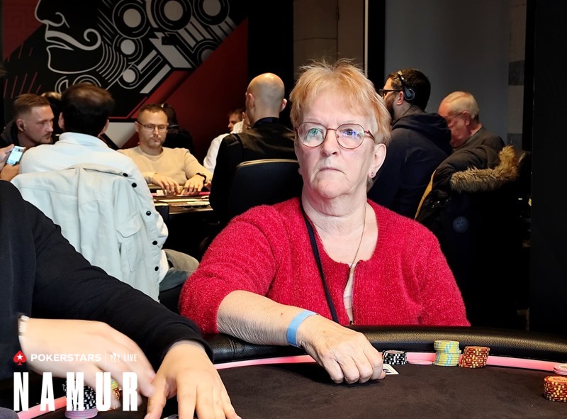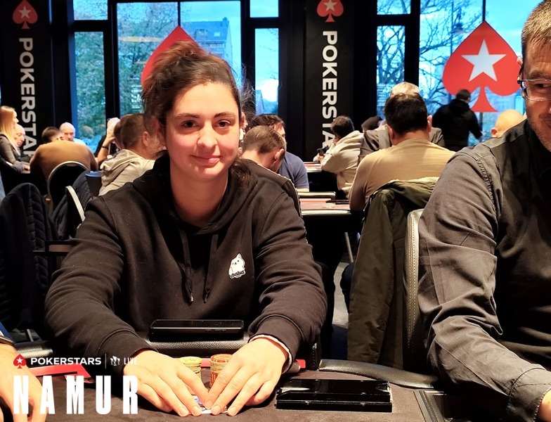Sandrine se retrouve à la tête d'un pécule de 330 000 jetons probablement en tête ou presque. Elle a profité d'un triple-up quelques minutes avant pour s'envoler au chipcount. "Un joueur UTG relance, c'est payé en MP et je relance en grosse blinde avec As Roi... l'ouvreur 4-bet ! Tapis du joueur derrière, je call", raconte Sandrine qui va engager son tapis quand le joueur sous le canon pousse aussi. "Il y a les Valets et les Dames en face, l'As river", termine la patronne !
