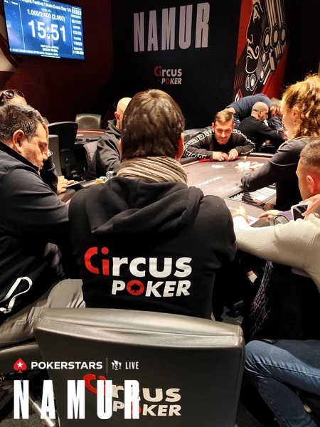 Reprise à 14 heures sur des niveaux de 40 minutes pour ceux qui ont franchi les 8 heures 45 minutes de poker de ce Jour 1A. C'est le chipleader qui a provoqué la fin de journée. Yoann13 vient relativement souvent au Circus Casino Resort de Namur, le Luxembourgeois a tout pris à Thomas D'Aix pour être le seul à emballer un million de jetons.
